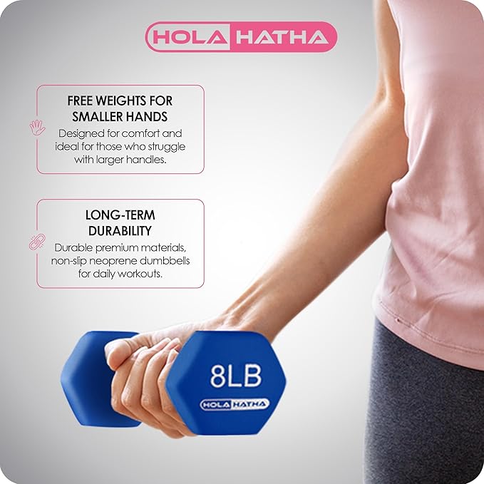 HolaHatha 2, 3, 5, 8, and 10 Pound Neoprene Dumbbell Free Hand Weight Set with Rack, Ideal for Home Exercises to Gain Tone and Definition, Pastel