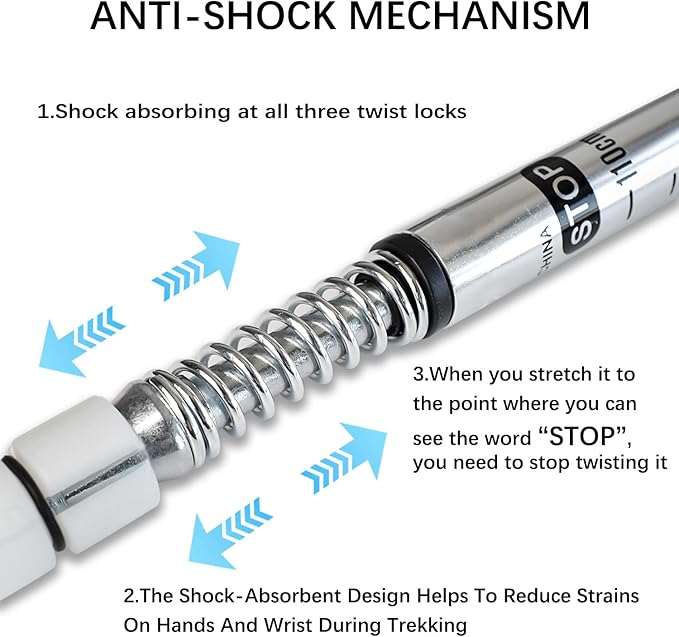 - Shock-resistant Design: Collapsible, lightweight kids trekking poles are an indispensable tool for recreational hikers, backpackers and mountaineers. The shock-absorbing design helps to reduce strains on the hands and wrists caused by hiking, and is useful for people with weak joints, previous sports injuries, or unstable hips, knees or ankles