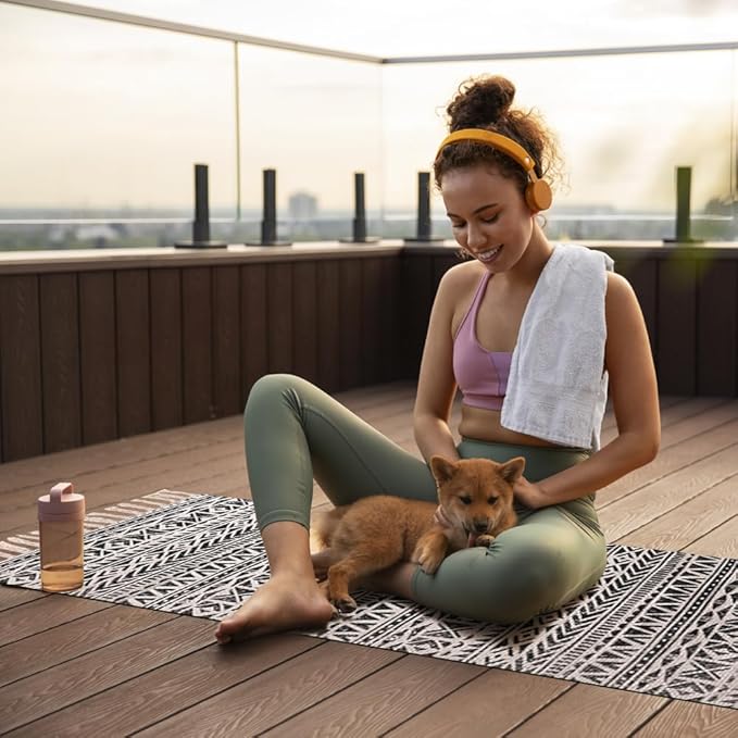 - ▨ PORTABLE WORKOUT & HOT YOGA MAT - Made for both indoor and outdoor use, our mat has fluffy cotton fibers that provide you with a cushioned surface. It’s lightweight, too, making it convenient to carry around. You can easily fold or roll it, then squeeze it into your bag.