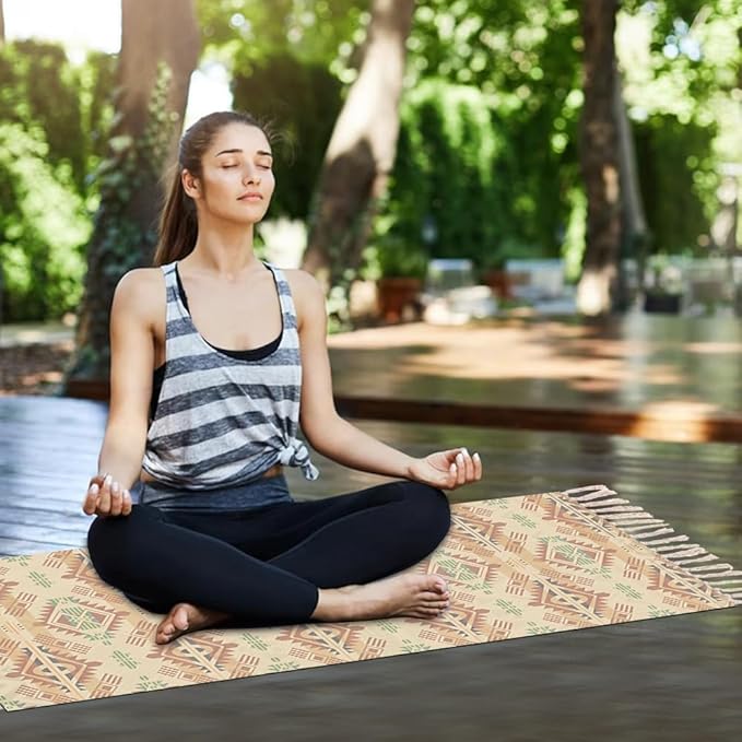 - ▨ BREATHABLE & HYGIENIC MEDITATION RUG - The cotton fabric of our fitness mat has natural cooling properties. It allows your skin to breathe, making it a comfy choice. Plus, it wicks away sweat and moisture. You can easily wash it clean. Enjoy a fresh-smelling mat every time! nuveti's non slip yoga mats are best suitable to practice many forms of Yoga.Pilates and Floor Exercises.