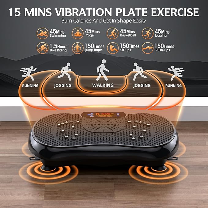 - 【STRENGTHEN BODY& RELIEF & REHABILITATION】Using the vibration fitness machine to help wake up muscles throughout the body & accelerating metabolism, and achieve a full-body workout goal. This process helps enhance mobility, effectively elevating your body fitness.