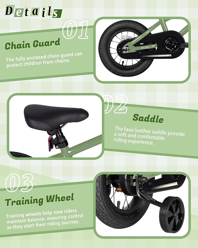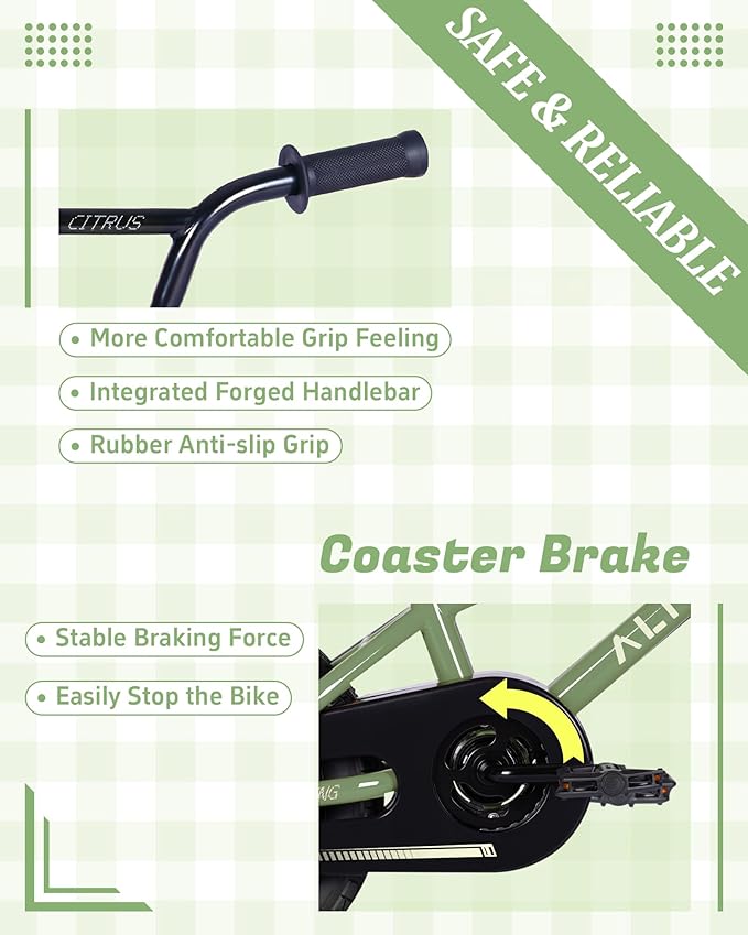 - Safety and Sturdiness: The trusty coaster brake is perfect for toddlers who might not have the muscle power for hand brakes yet. The full chain guard keeps little fingers safe from getting caught in the chain. And those big 12 x 2.4-inch tires give a great grip to stop any slipping while they're riding