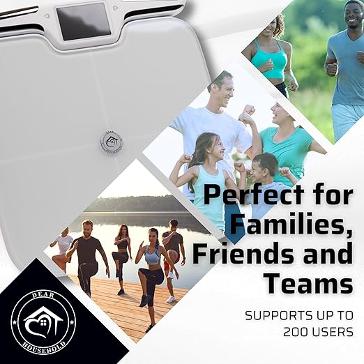 - Multi-User Support & Wellness Motivation: Supports up to 200 individual user profiles, making it perfect for families, gyms, clinics, and wellness centers. Whether you’re a health professional, fitness enthusiast, athlete, or dieter, this smart scale provides personalized insights for tracking your wellness journey. Ideal for various users, it helps motivate progress through fitness challenges, weight-loss goals, and health-monitoring events. Easily share your data with trainers or health coaches for tailored guidance and a more customized, results-driven approach to achieving your fitness and wellness goals.