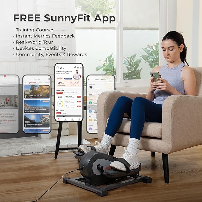 - 【FREE FITNESS APP CONNECTION】Enjoy FREE access to the SunnyFit APP with NO membership fees! Dive into 1,000+ trainer-led workouts, explore 10,000+ virtual scenic tours, track your progress, challenge others, and much more!