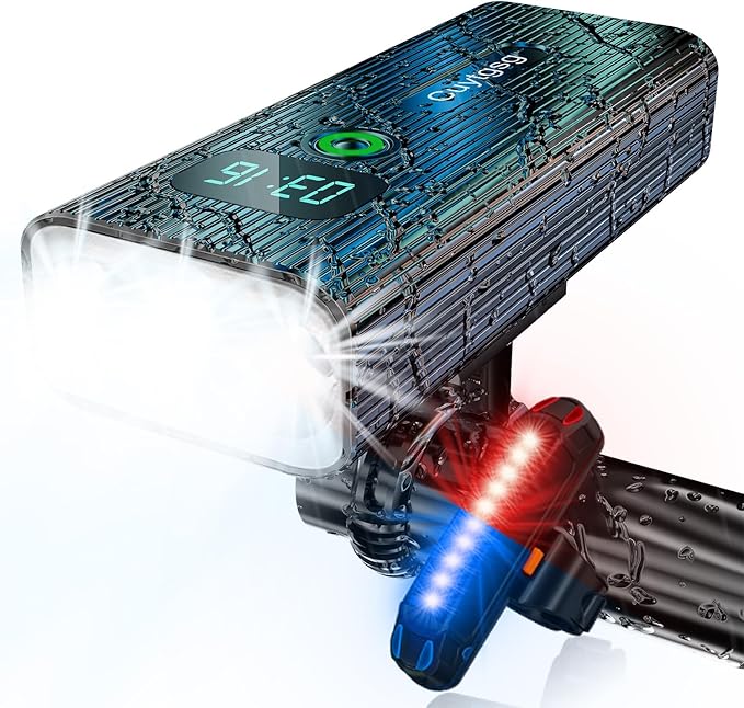 - 10-MODES BIKE LIGHT RUNTIME UP to 24+Hrs with LCD DISPLAY : Bike Headlight:3/5 Swich Modes,Click Button to Start up: High Light - 18 hr, Medium Light - 22 hr, Low Light - 26 hr, Fast Flash - 30 hr, SOS -36hr Bike Taillight: RED/BLUE 5 Swich Modes : Red ,Blue ,Red Fast Flash ,Red Slow Flash ,Red /Blue Flashing