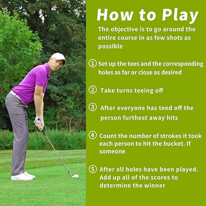 - 【Easy to Install and Store】Our 6-hole backyard golf game set features collapsible buckets and flagsticks that can be installed in just 1-3 minutes. Naturally, it's also particularly easy and quick to store, and very portable, as you only need one bag to store everything