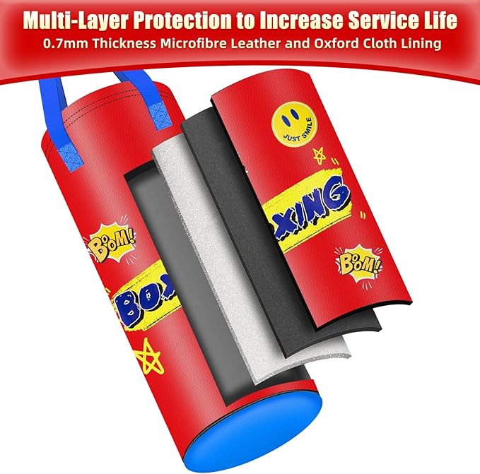 - PU Durable Materials: The kids punching bag is made of high quality PU leather, which is anti-burst and wear-resistant, anti-tear, good cushioning, fast rebound. This heavy punching bag superior to traditional oxford fabric and can withstand blows well over time.