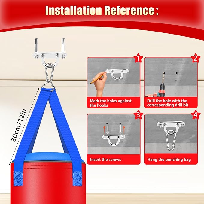 - Kids Boxing Set: The karate bag includes 1 x 2ft karate punching bag(unfilled), 1 pair 6 oz boxing gloves, 1x hanger, 1 x connecting carabiner.