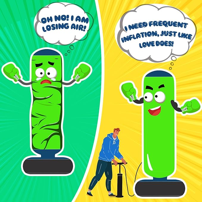 - Promotes Growth: The simple act of hitting, kicking, and punching this inflatable punching bag helps kids develop balance, strength, and coordination. Your child can reduce tension and develop confidence by using a kicking punching bag during playtime. Let your children grow alongside this inflatable boxing bag.