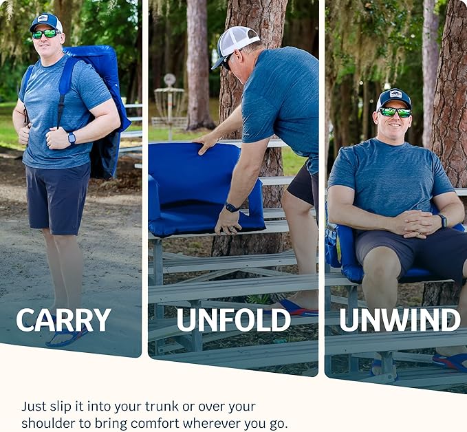 - VERSATILE USE - These Portable Sports Chairs are Ideal for Stadiums Concerts, Bleachers, Kayak Seat, Canoe, Boat, Paddle Board Seat, Concert, Camp, Camping, Lawn, Picnic, Baseball Sports Events, and more.