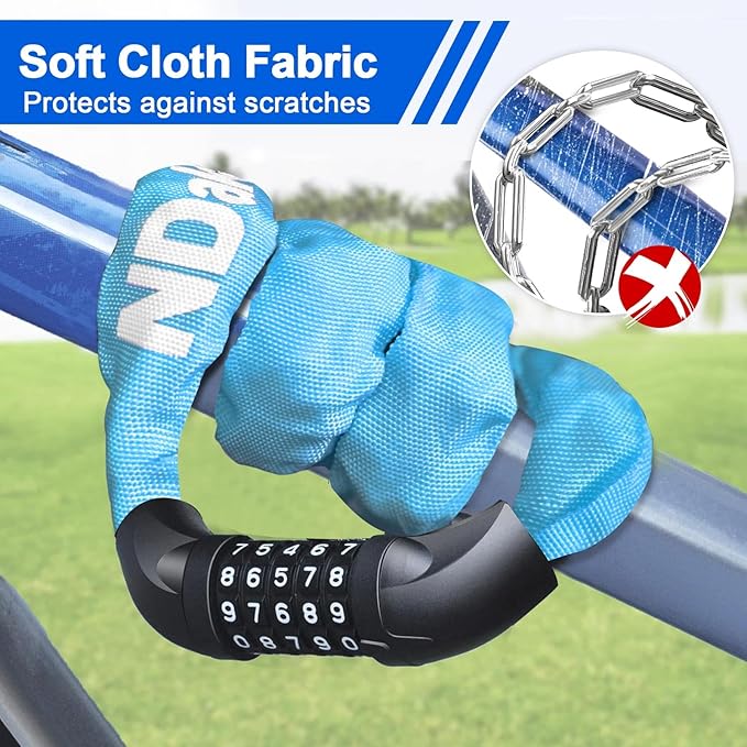 - SCRATCH-PROOF FABRIC PROTECTION: The bicycle chain lock is wrapped by a high quality polypropylene fabric, which is scratch-proof and wear-resistant, anti-hot and anti-icing hands; it protects the chain and prevents it scratching your bicycle frame, long lifespan.