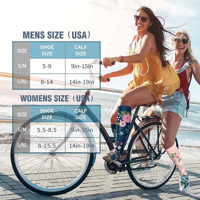 - GIFT IDEA & SATISFACTION GUARANTEED- What's more commendable is ...this is a very suitable compression socks for sharing,a variety of styles,suitable for all kinds of people,you can give them as a gift to your friends,families.It has universal applicability,no matter outside or inside,you can benefit enormously from our progressive compression technology.RISK free,if you are not happy with the purchase for any reasons,contact us for an exchange or refund with no questions asked.
