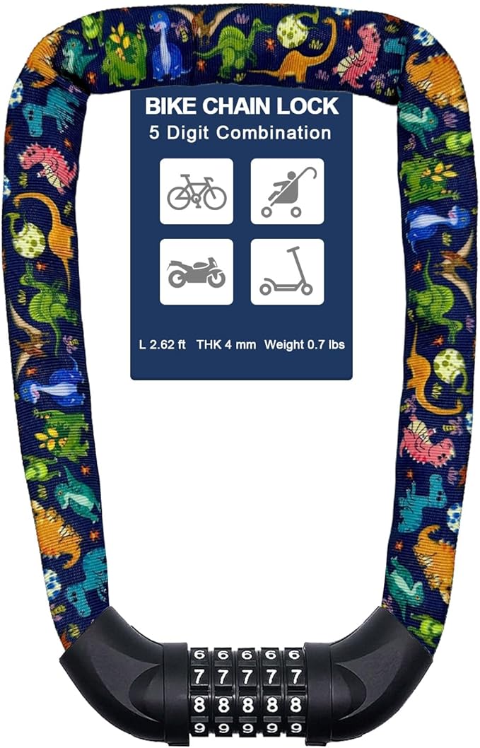 - SECURE & RESETTABLE: 5-digit resettable combination bike chain lock, much safer than other 4 digit locks. Easy to set your own personalized number combination.