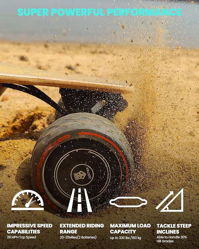 - 🚀【28 MPH Top Speed & 30% Hill Climb with Dual 600W Motors】 Experience thrilling performance thanks to dual 600W hub motors (1200W total), delivering a top speed of 28 MPH and conquering 30-degree hills with ease. Whether commuting or carving, enjoy smooth, maintenance-free power across various terrains.