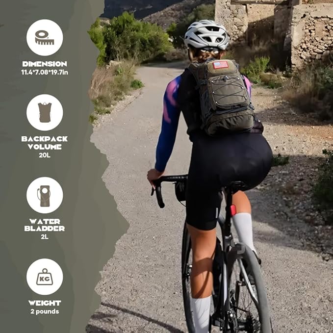 - Hands-Free Leakproof Water Bladder:Stay hydrated on the go with a 2-liter bladder and bilateral hose outlets. The large opening design of the bladder ensures easy filling and cleaning. The separate insulated compartment provides hours of cooling with ice packs. The bladder is replaceable and supports up to 3 liters.