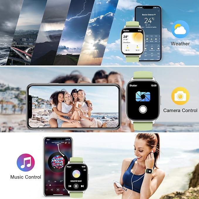 - 2 Watch Straps, 2 Wearing Styles - Smart watches for women men adopts a larger screen design, and come with two watch bands of different colors.(Receive/Dial) and message notifications can be displayed directly on screen.Smart watch for android phones contains many dials readily available to choose from along.You can also DIY watch faces with your own photos.Smart watch for iphone compatible can be any photo,such as your family,pet,et