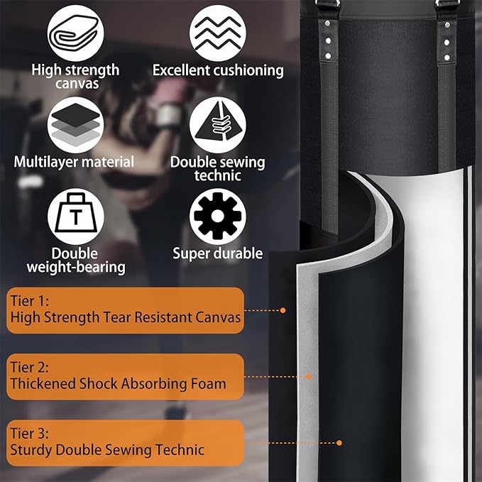 - EXCELLENT CUSHIONING & REBOUND: The boxing bag interlayer is made of thickened high-resilience shock-absorbing pearl cotton,compared to regular adults heavy boxing bags, Mamxwaga Muay Thai bag is thicker and softer to make it easier to practice MMA, muay thai, kickboxing, karate, judo, taekwondo, Suitable for both beginners and professionals
