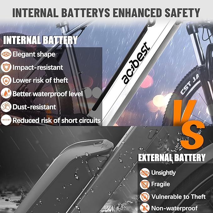 - 48V 10.4AH Removable Built-in Battery - The UL2849-certificated battery is easy to remove for charging and has a waterproof, shockproof and anti-theft design, which is safer and lasts much longer. The battery only takes 4-6 hours to fully charge, giving you a range of up to 35 miles (throttle)/55 miles (PAS) on a single charge.