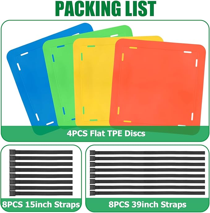 - 【Soccer Goal Target Set】-- You will receive 4 square soccer goal targets with 12" sides in different colours, red, green, blue and yellow. As well as 16 adjustable length straps, 8 extra-long 39" straps and 8 15" straps. With them, you can develop many different hitting scenarios and training methods.