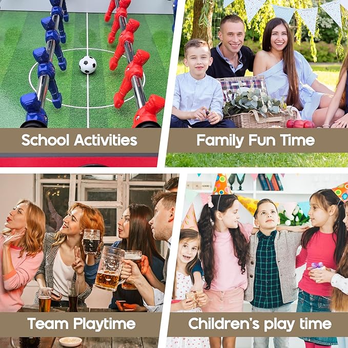 - Gameplay Features: This classic table football game is equipped with adjustable players, ergonomic handles, and smooth playing surfaces for an ultimate gaming experience. Realistic game scenes help exercise coordination, promote intellectual development, and enhance memory.