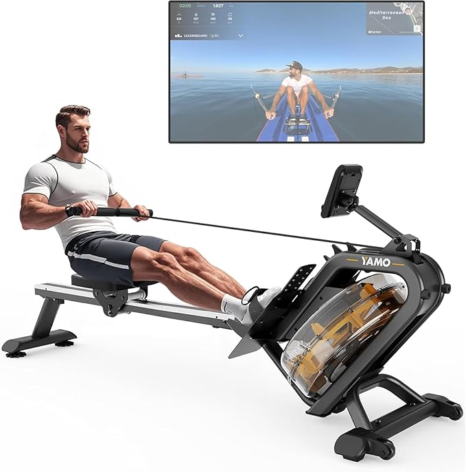 YAMO Water Rowing Machine for Home, Row Machine with 330LB Weight Capacity, Support Bluetooth & Compatible with Apps, Water Row Machine with Comfortable Seat and Tablet Holder