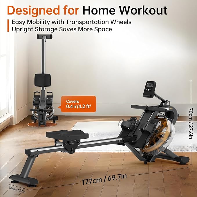 - 【Easy Mobility & Space Saving】This home rowing machine is designed with mobility and space-saving in mind. Equipped with transportation wheels, it can be effortlessly moved around your home or gym. When not in use, its vertical storage capability allows it to take up minimal space