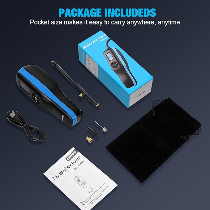 - đăHigh Performance & Rapid Inflation Tire InflatorăThe KEZERS tire inflator portable air compressor is designed with a powerful motor that delivers up to 160 PSI and delivers fast and efficient inflation, allowing you to inflate car tyres, motocycle tyres, bike tyres and sports equipment in just minutes, so you can get back to doing what you love soon!