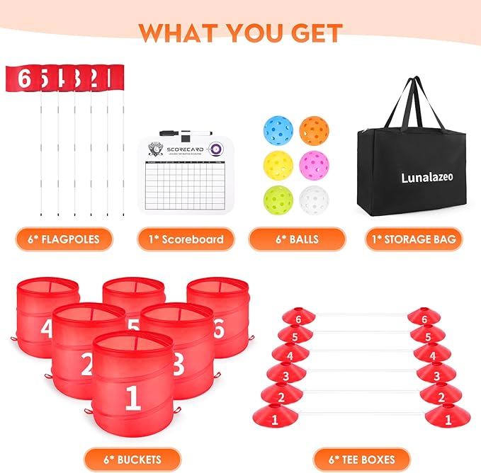 - EASY TO LEARN: Each time you hit the ball into a golf bucket, your stroke count decreases by 1. However, if you touch a bucket with the ball, your turn ends immediately. The player with the lowest stroke count at the end of the game emerges victorious! Alternatively, you can also create your own game rules for added excitement and customization