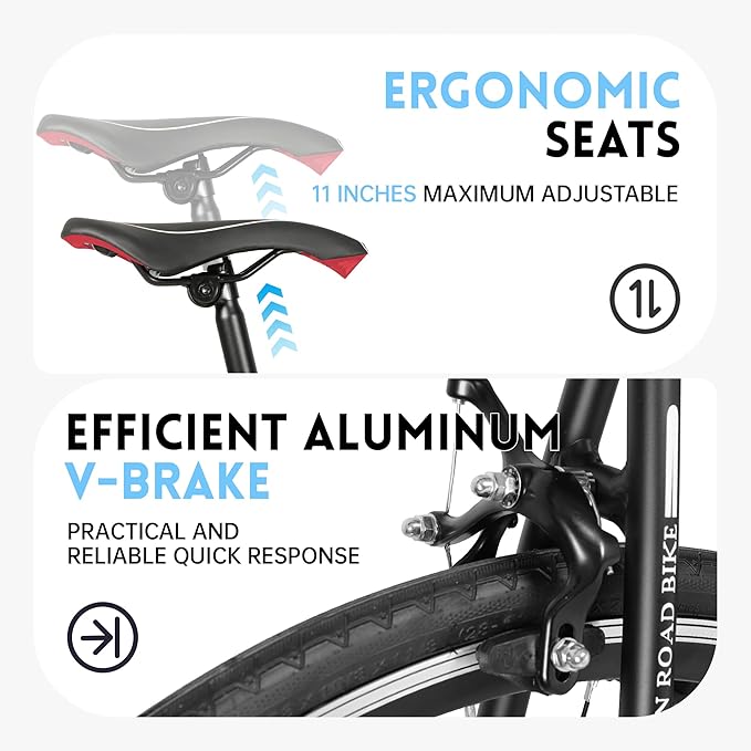 Road Bike 14-21Speed 700C Wheel with Light Aluminum Alloy Frame Commuter Bicycle with Dual Disc/V Brakes for Women and Men Black,White,Blue,Red