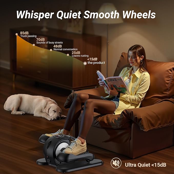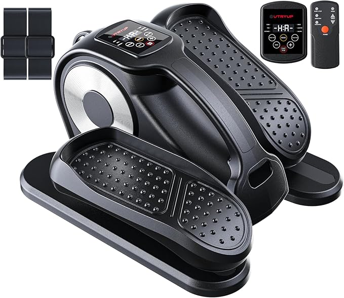 - User-Friendly Features with Remote Control: The UTRYUP under desk elliptical pedal exerciser comes with a remote control and foot straps for easy speed and setting adjustments without bending down. The LCD display shows real-time feedback on time, speed, and calories burned. Its intuitive design makes it simple for beginners and seniors to use, offering an effective workout. Perfect for improving health at home or the office, this easy-to-use elliptical is ideal for all fitness levels.