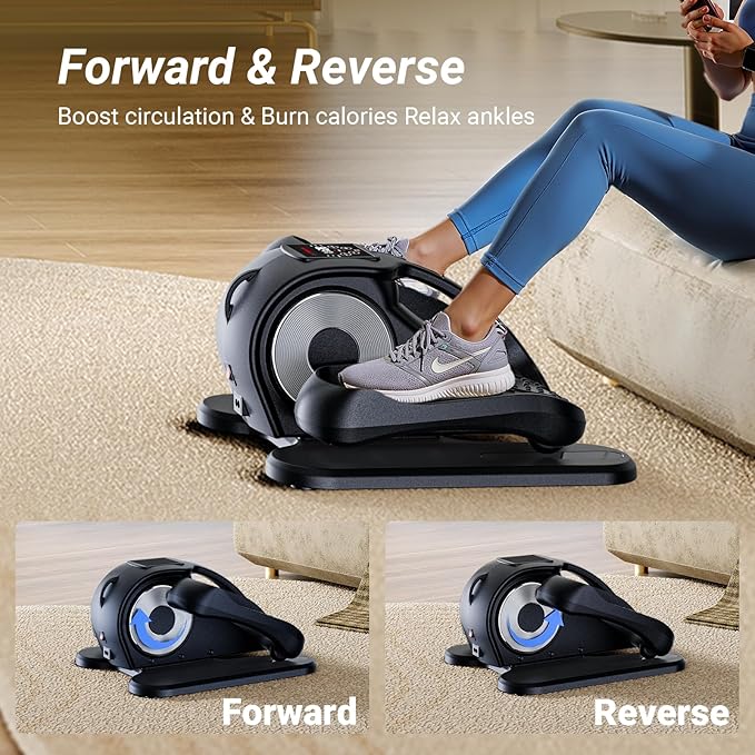 - 2 in 1 Motion Simulation & Adjustable Speeds:The under desk elliptical offers manual and automatic modes, allowing for personalized or guided workouts. With 12 adjustable speed levels and bidirectional pedal motion (forward and backward), it targets multiple muscle groups for an efficient workout. Whether for a light warm-up or an intense session, this seated elliptical adapts to your fitness needs, offering flexibility and versatility in your exercise routine.