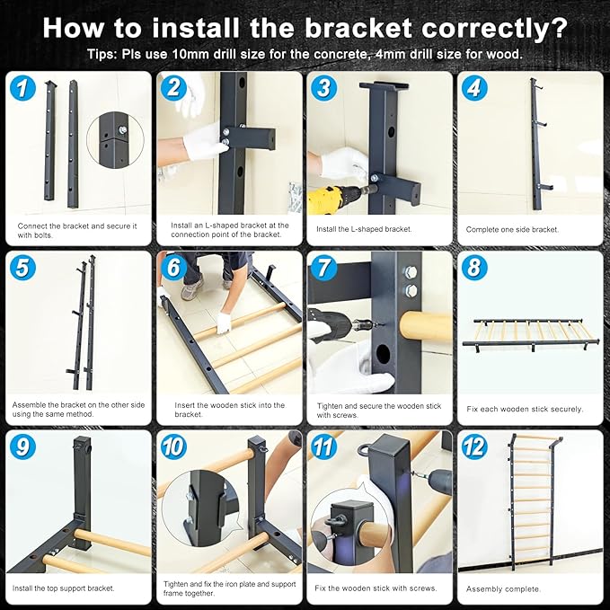- 【MULTIPURPOSE FITNESS EQUIPMENT】32 inch wide mounting hole spacing is perfect for most homes with 16 inch center wall studs and is ideal for gymnastics, stretching, and cross-training in the home, gym, school, or clinic