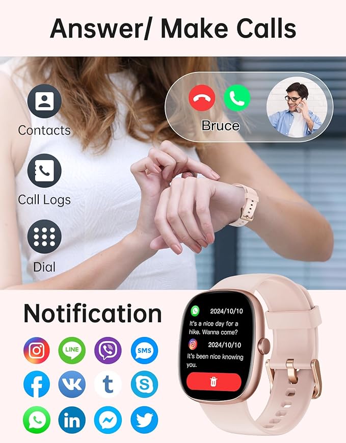 - Make/Answer Calls Smart Watch: By connecting the watch to your smartphones (compatible with iOS 9.0/Android 5.0 or above smartphones) via Bluetooth and the app, you are able to answer or make calls just on this smart watch, allowing you to stay connected with family and friends anytime.