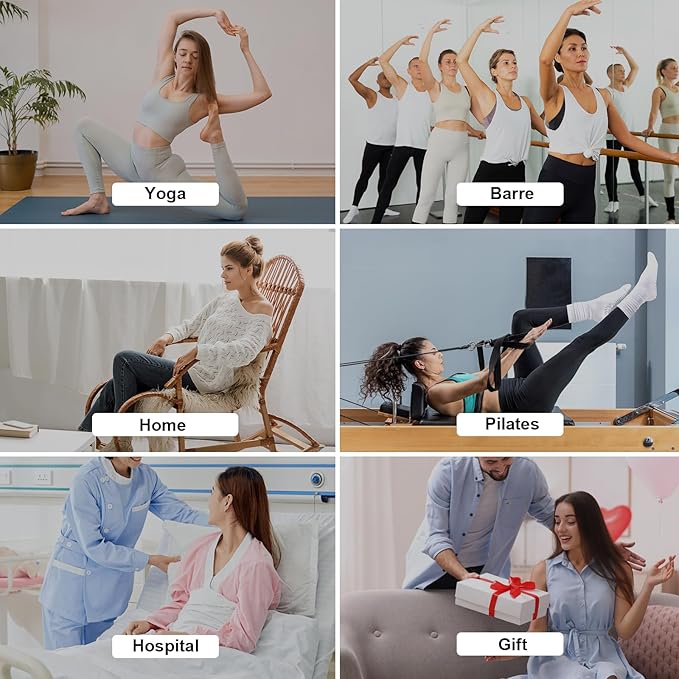 - Barre Socks with Grippers: These pilates socks feature non-slip dots on the soles, providing excellent grip and ensuring you stay securely in place during Pilates, Yoga, Barre, Workout, Ballet, Trampoline, Travel, Gym, Dance, Strength training, Fitness