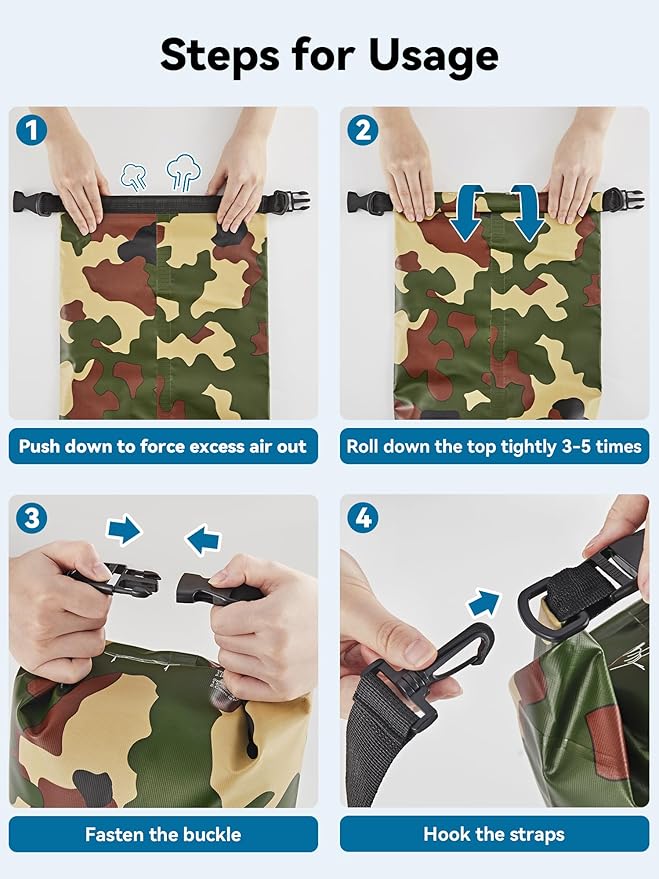 - Multifunctional - Equipped with adjustable shoulder straps for shoulder carrying and backpack, our dry bag is very convenient for different occasions like boating, rafting, kayaking, hiking, camping, fishing, mountaineering, etc. The lightweight dry bag won't weigh down your arms or shoulders