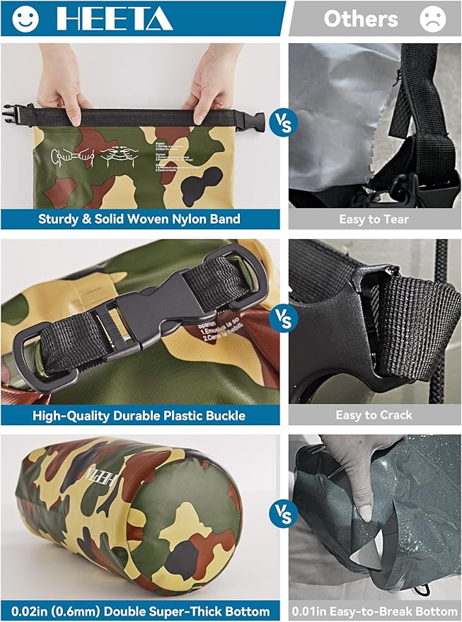 - Multifunctional - Equipped with adjustable shoulder straps for shoulder carrying and backpack, our dry bag is very convenient for different occasions like boating, rafting, kayaking, hiking, camping, fishing, mountaineering, etc. The lightweight dry bag won't weigh down your arms or shoulders