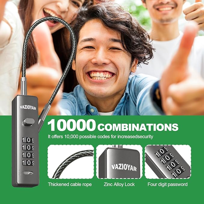 - Prevent Theft: Use the VAZIOYAR Versatile Security Combo Lock to stop a thief in their tracks; Functions as a theft deterrent and a safe lock to ensure that your bike, motorcycle, baby stroller,trunk,and other personal valuable belongings stay right where you left them while you are away