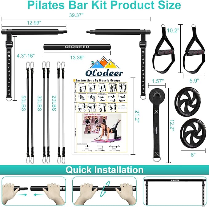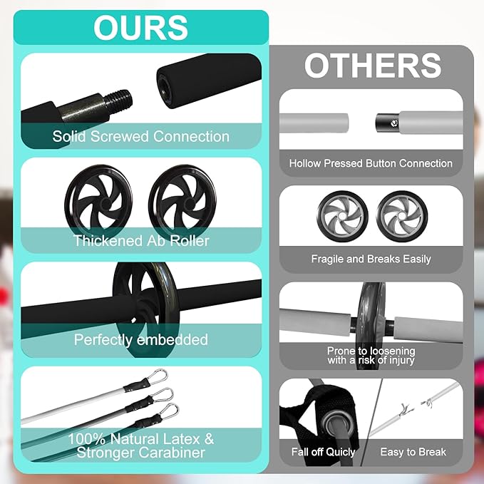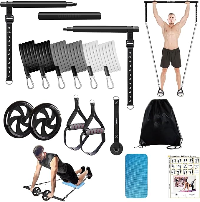 Pilates Bar Kit with Resistance Bands for Working Out, Pilates Equipment with Ab Roller for All Fitness Levels, Portable Home Gym Full Body Workout Equipment for Women&Men