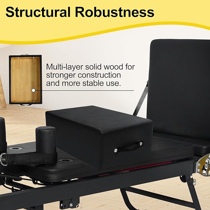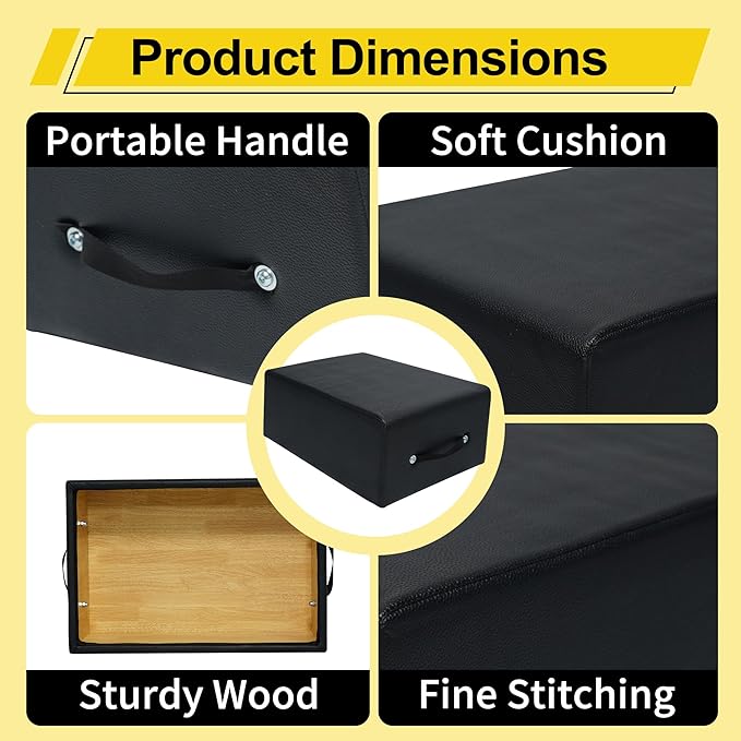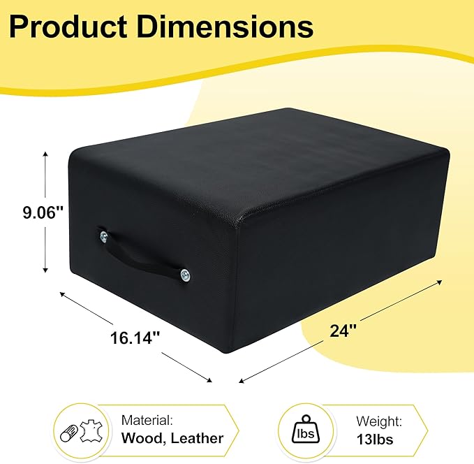 - SAFE MATERIAL: This pilates box is made of multi-layer solid wood, sturdy and durable; the outer layer is covered with high-density sponge pads to make pilates training more comfortable; the surface is covered with soft and flavorless PU leather, which is anti-scratch, waterproof, and wear-resistant, and it can be cleaned by wiping with a damp cloth!