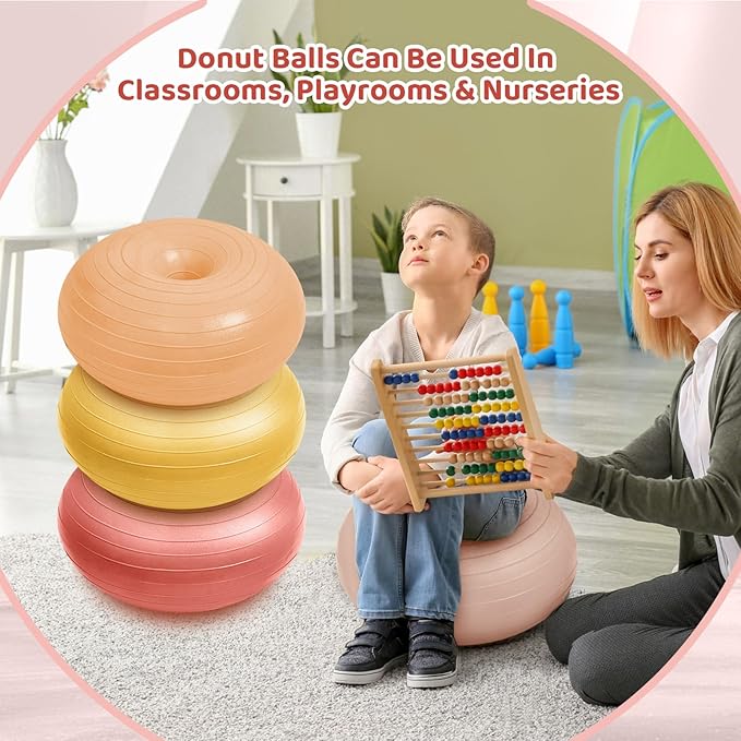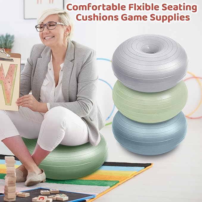 - What You Receive: you can get 8 pcs flexible seating designed with donut shape and 8 colors, dark brown, yellow-orange, light yellow, gray, light gray-green, dark gray-green, gray-blue, each about. 20 x 20 x 8.8 inches, 1 pcs inflator, inflatable can provide kids with even a correct sitting experience, can provide effective cushioning for children and protect their hips