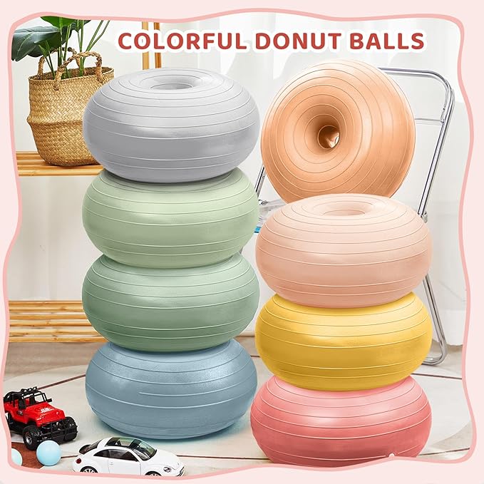 Lewtemi 8 Pcs Flexible Seating for Classroom Elementary 20'' Yoga Ball Chair Large Inflatable Donut Exercise Ball Chair Wobble Seat with Inflator for Kids Student Balance