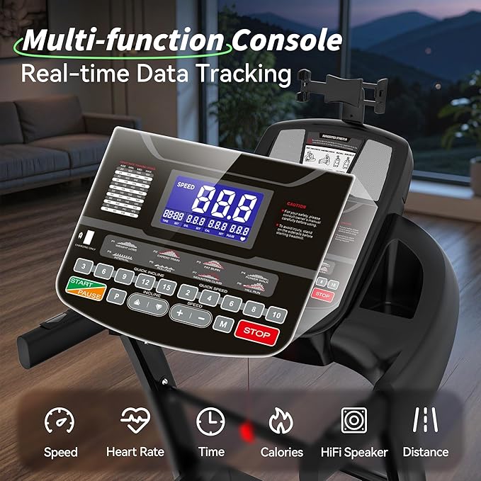 - 【71 WORKOUT PROGRAMS FOR PERSONALIZED TRAINING】This incline treadmill features 64 preset programs, 3 customizable user programs, and 3 countdown modes for distance, calories, or time. It also includes a FAT program to monitor body mass index, helping you achieve your fitness goals efficiently.