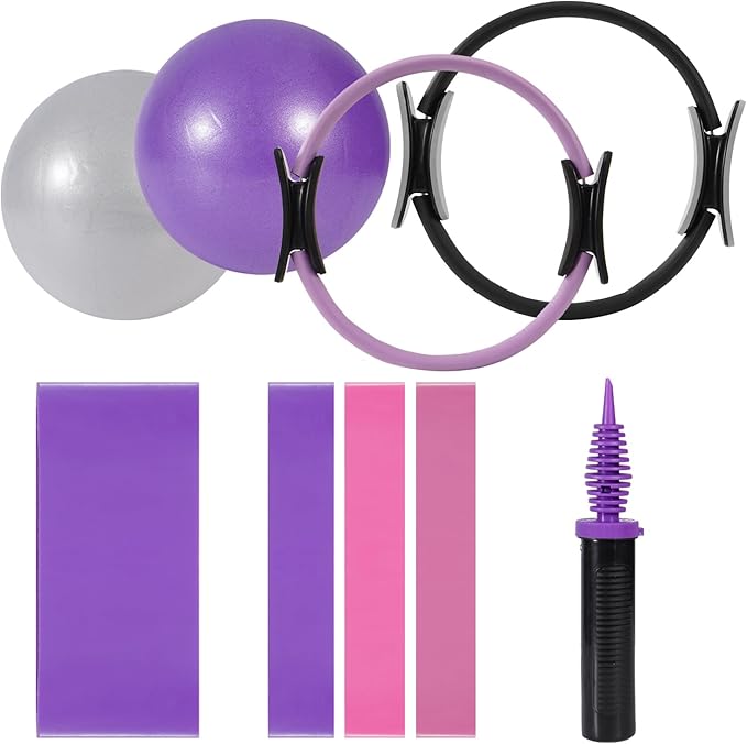 - What You Get:2 pilates ring circle, 2 small pilates ball, 4 resistance bands, 1 Manual Balloon Pump.If you have any questions, don't hesitate to reach out to us, and we'll provide you with a great solution
