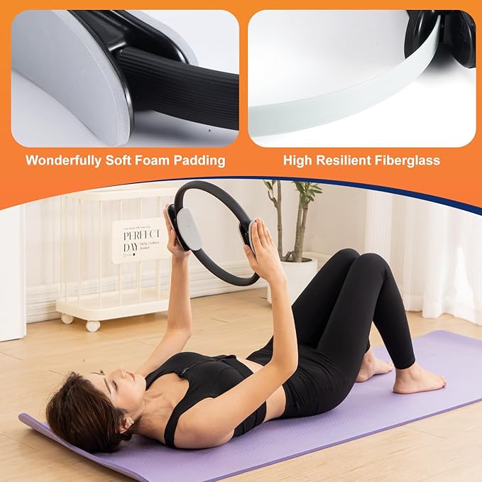 - Premium Anti-Deformation & Versatile Pilates circle:Our magic circle Pilates ring is crafted with sweat resistant, dual-sided foam pads, for a cushioned workout.Made from robust fiberglass with a rubber sleeve, our Pilates ring circle won't crack, re-forming every time.Replicate Pilates studio props with our portable inner thigh exercise equipment for women- home gym perfection!Use our versatile Pilates circle for full body resistance training - sculpt your body, your way!