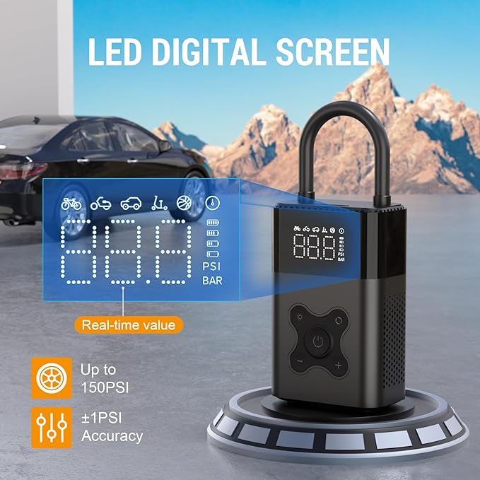 - Extremely Versatile:This portable air compressor is a multi - functional tool. It serves as a tire pump for cars, motorcycles, and bikes, a pump for swimming rings and balls, and also features an LED light and a digital tire pressure gauge. Its versatility makes it useful in a wide variety of scenarios