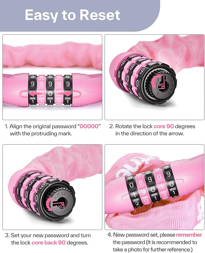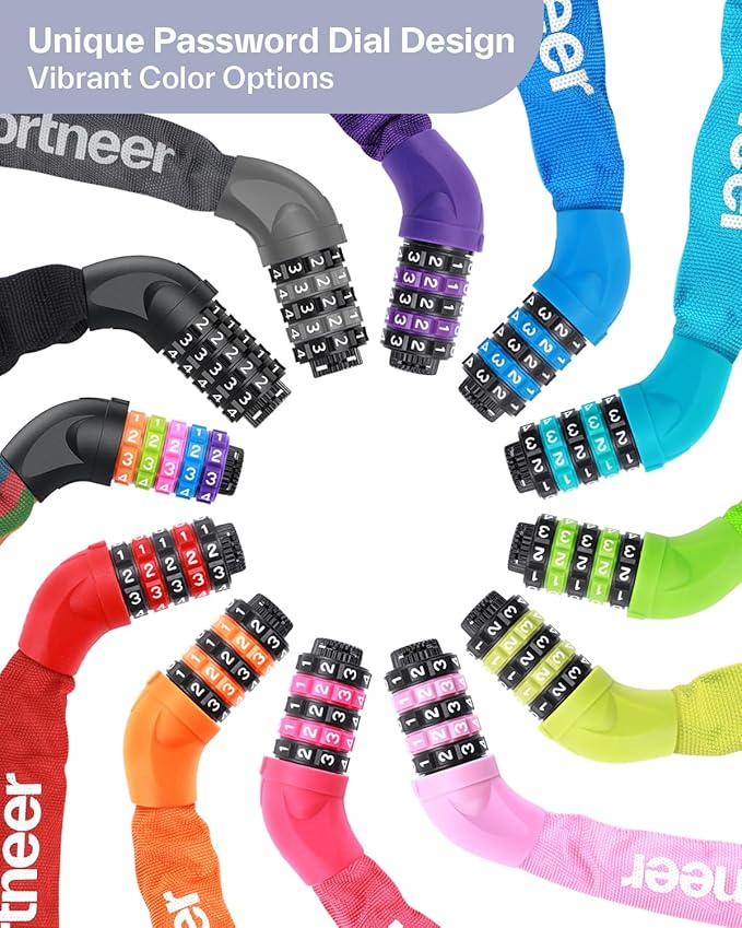 - High Security & Keyless Design: Say goodbye to the hassle of carrying keys and hello to keyless convenience. The advanced 5-digit combination lock offers unparalleled protection, with up to 100,000 possible combinations, making it virtually impossible to crack. This bike chain lock is the perfect choice for those who value safety and convenience above all else.