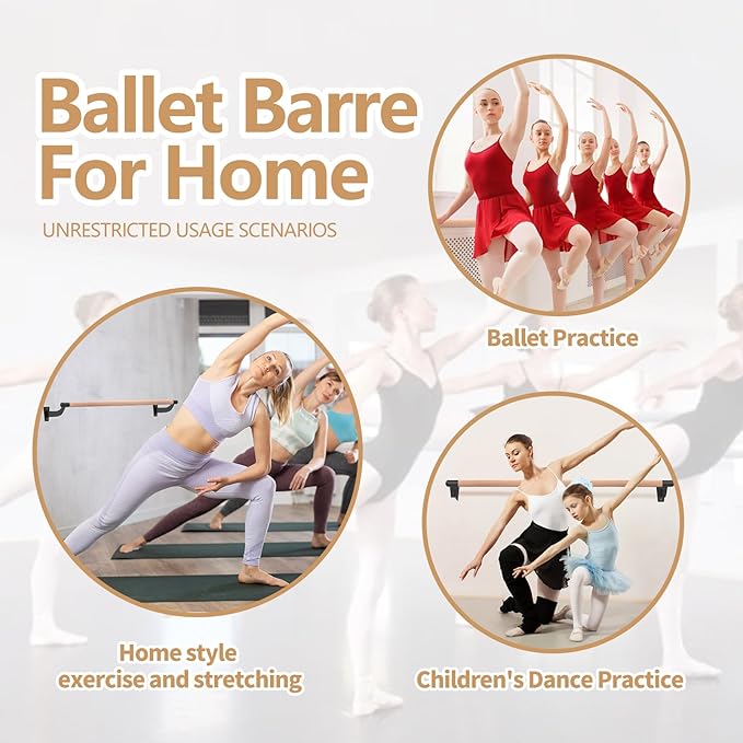 - Exquisite Design and Material: Ballet barre wall mount features an exquisite handle with a diameter of 1.57 inches and a length of 4.33 feet, made of beech wood with a smooth surface without splinters, ensuring a comfortable grip. This material of the ballet bar not only provides a stable support, but also adds to the aesthetics.
