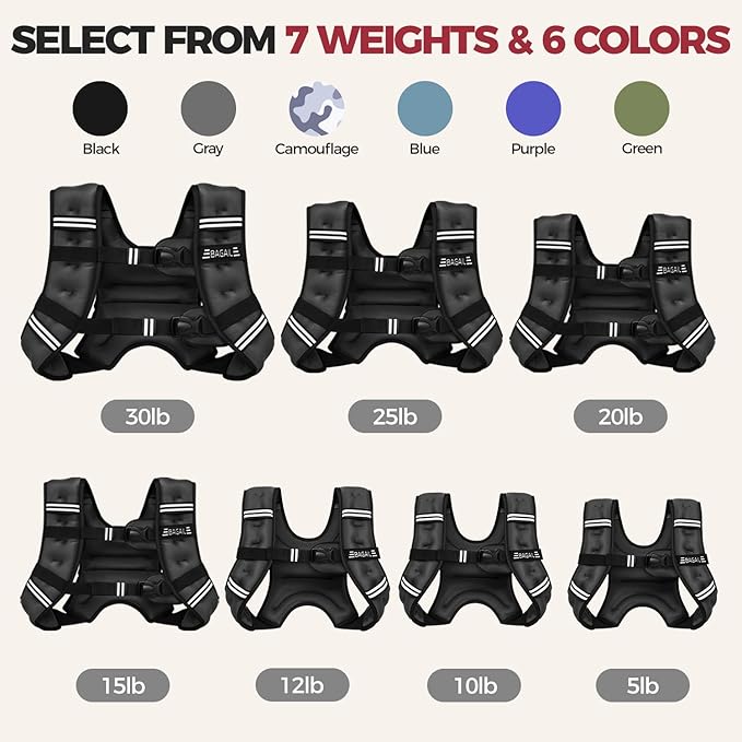 BAGAIL Weighted Vest, 5lbs/8lbs/10lbs/12lbs/15lbs/20lbs/25lbs/30lbs Weight Vest with Detachable Phone Pouch, Rucking Vest for Women, Men, Walking, Weight Loss, Training, Running