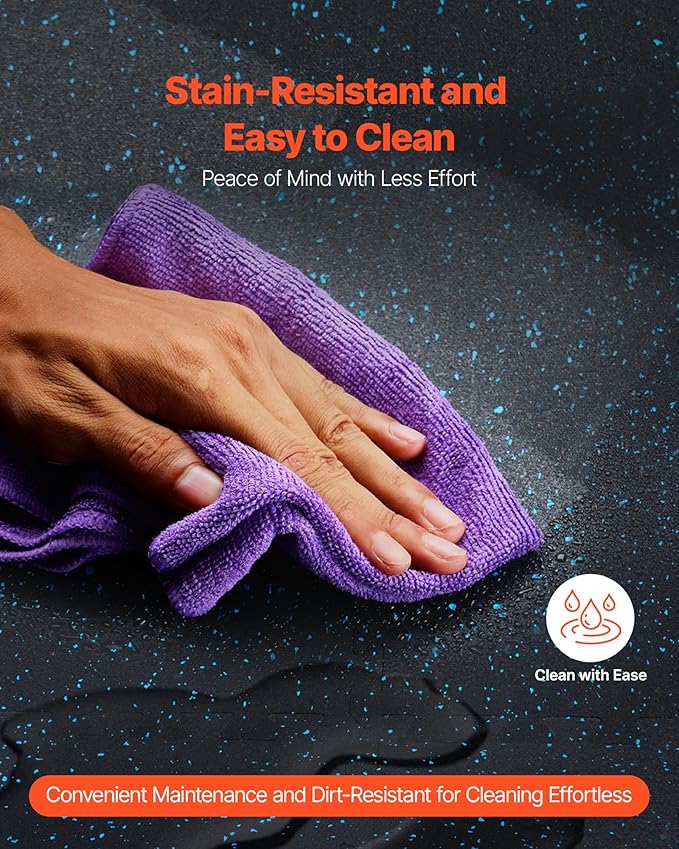 - Easy Care: Enjoy easy maintenance with our cleanable gym floor mat; simply wipe or rinse the surface for quick and effortless cleaning, ensuring your rubber flooring tiles stay fresh and ready for your next workout.