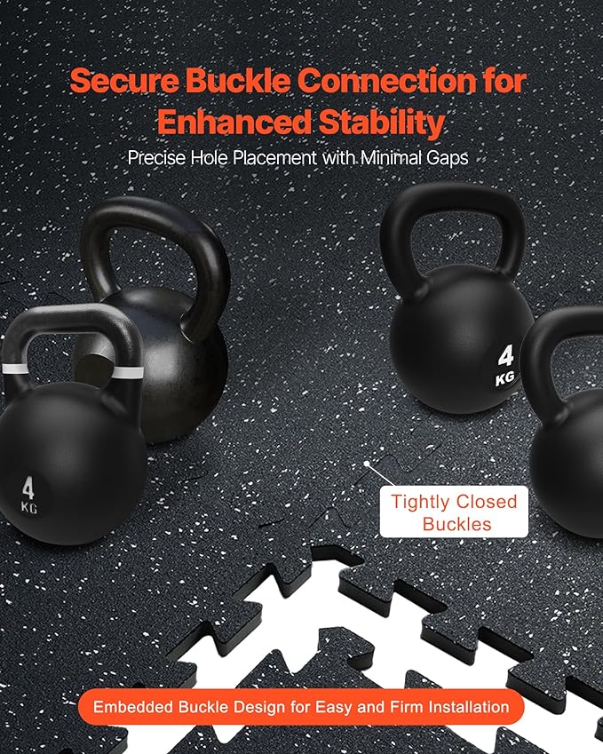 VEVOR 0.56 Inch Thick Gym Floor Mats, Rubber Top with EVA Foam, 25" x 25" Gym Flooring Workout Mats, Interlocking Puzzle Gym Mats for Gym, Home, Garage